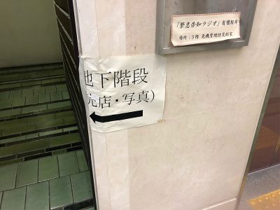 「レストラン亀井」は、熊本市役所の地下。ATM近くのエレベーター横に地下階段の案内があります。