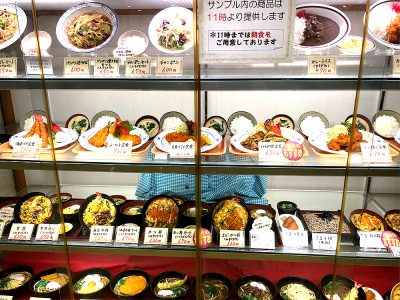 券売機の横には食品サンプルが置いてあります。11時前まで間は朝食が提供されているそうです。
