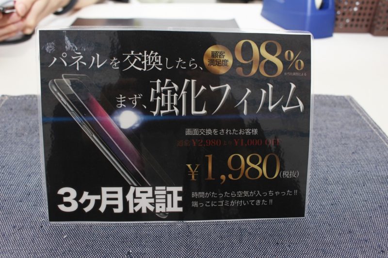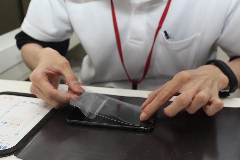 ということで、最後にこの強化フィルムを貼ってもらって修理完了!いくら頑丈でもさすがに自分のはカナヅチで叩く気はしませんでしたが、これで落としてもきっとちょっとくらいなら大丈夫なはず…!