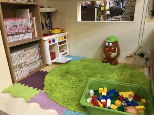 キッズスペースもあります。小さなお子さんがいるお母さんには嬉しいし安心の美容室ですね。