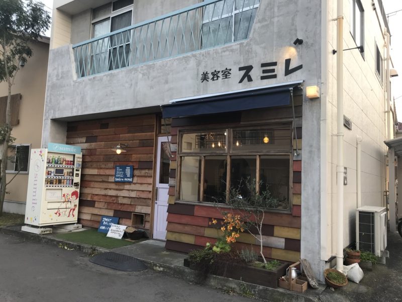 動物園通りを東バイパス(国道57号線)方面から入って、車で1kmほど直進すると左手にファミリーマートがあります。その道路向かいに「美容室smile(スミレ)」を発見。
