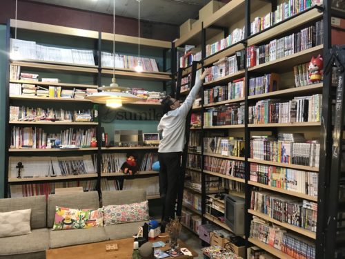 壁を埋め尽くすかのような本棚に、ものすごい漫画の数!