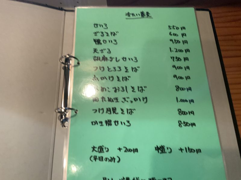 寒いので、温かい蕎麦が食べたい気持ちもありましたが、そば湯目当てで、冷たい蕎麦を見てみました。
