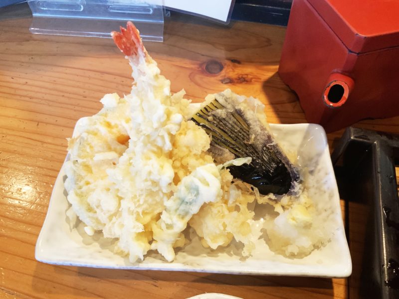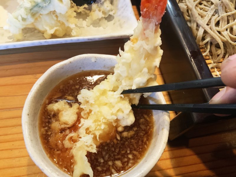 揚げたてなので、衣はサクサクしていて、つゆにつけてもサクサク感が残るレベル。