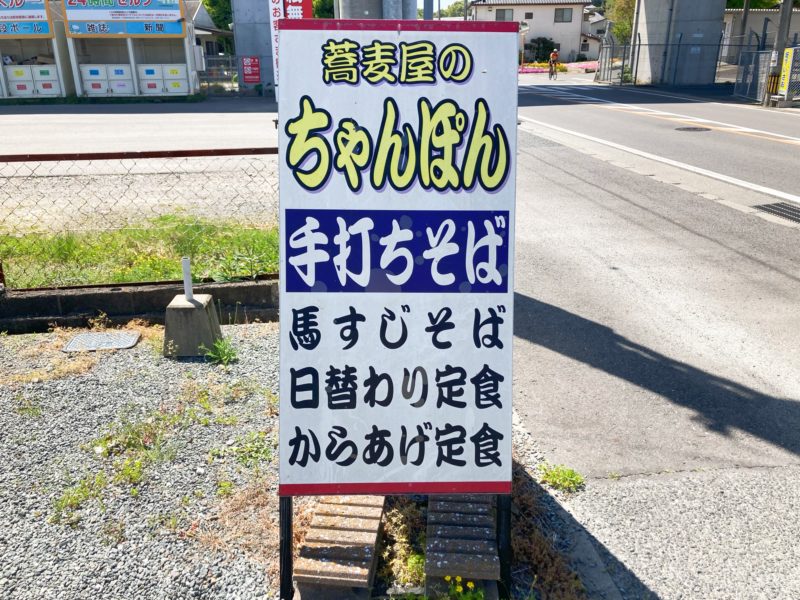 看板には手打ちそばの文字。ちゃんぽんがおすすめのようですが、馬すじそば美味しそう。