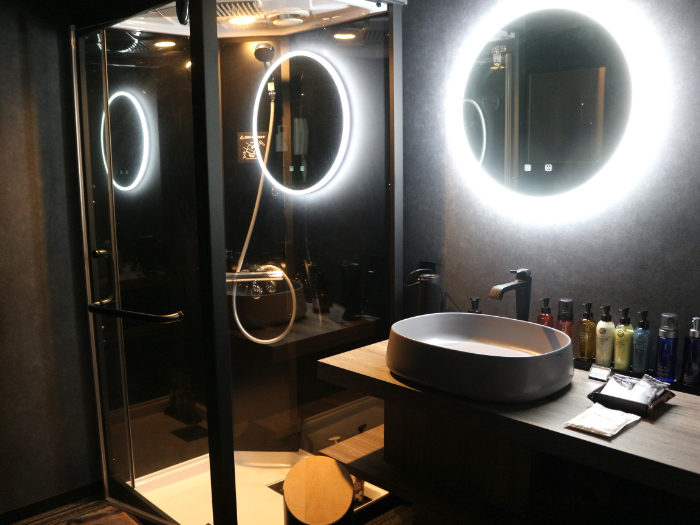 さらに、ドライヤーに加えてヘアアイロンが2種類(ストレート・カール)!ここまであるなら『デートの前にちょっとサウナで整える』なんて使い方もできちゃいますね。なんでも揃っているので手ぶらで行けます。最高。