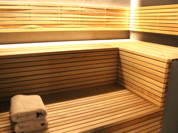 こちらがサウナです。1人がゆっくり寝られるくらいのスペースがあります。