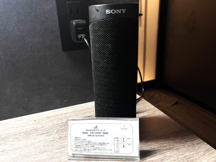 Bluetoothスピーカーも。十分すぎるくらいの設備。おもてなし力に感激してしまいました。お客さんに最大限に楽しんでもらいたいというお店の心遣いが感じられますね。