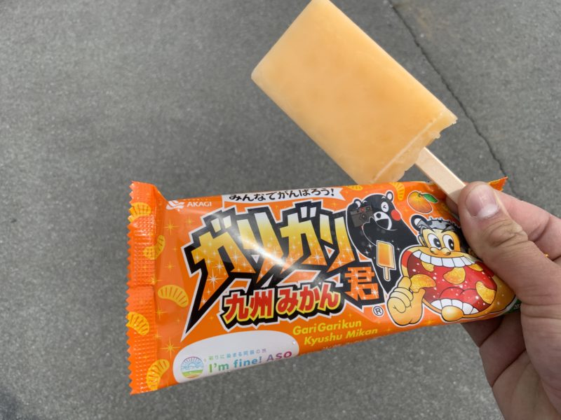 実はこのガリガリ君、新阿蘇大橋開通を記念したコラボパッケージ。くまモンもあしらわれています。