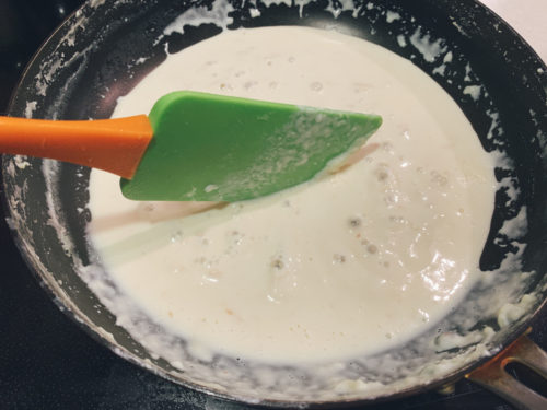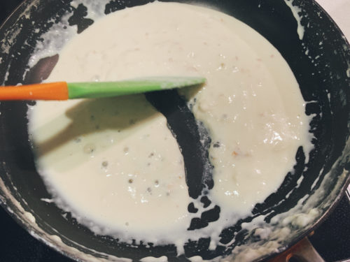 カルボナーラっぽい匂いになってきました。チーズ・生クリーム・バター系の香り。