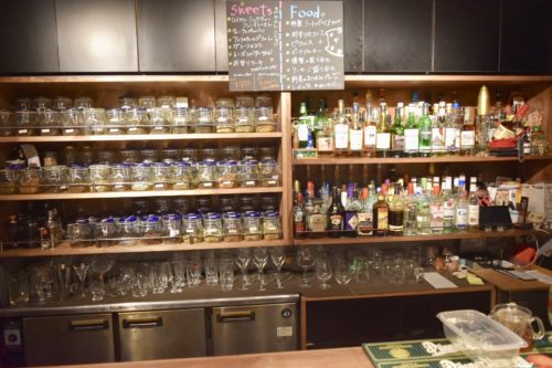 黒を基調に落ち着いた雰囲気の店内には、バーのようにずらりと茶葉が並べられています。その数なんと100種類以上!
