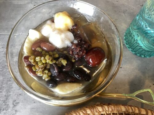 豆花も、毎日5種類以上はトッピングをされているそうで、緑豆やお団子にナツメなど、具だくさん!