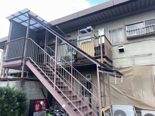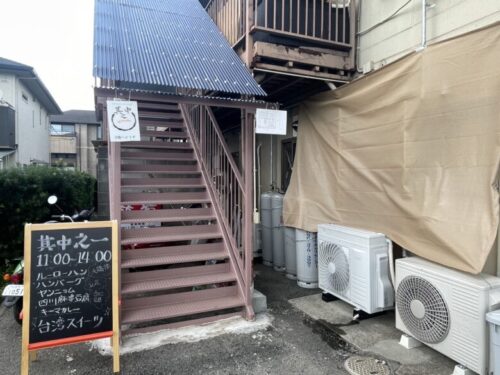 階段の下に黒板があり、お店であることは間違いなさそうです。