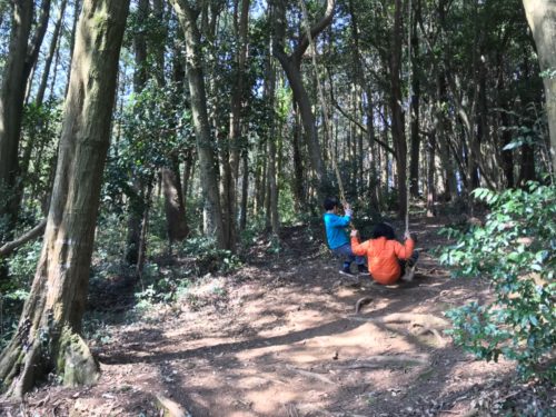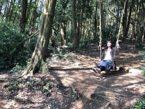 食後に緒方家の子どもたちに、「こっちにブランコがあるんだよー」と案内され、森の小道をのぼって向かった先にあったのは…