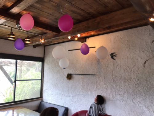 天井には風船もあって、子どもは大喜び!なんだかほっこりあたたかい気持ちになれる、おうちのような空間です。