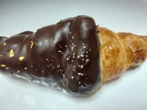 前回販売されたチョコクロワッサンと似ていますが、ゲランド塩を纏いバージョンアップしております。
