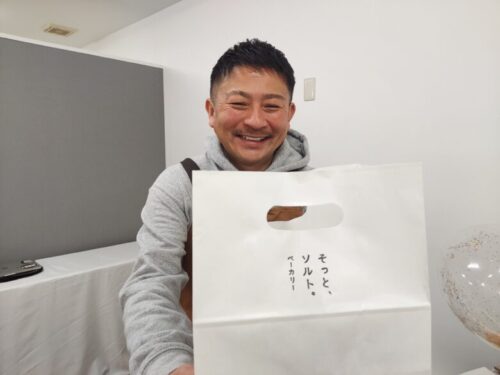 自信作の塩パンを持って満面の笑みです。