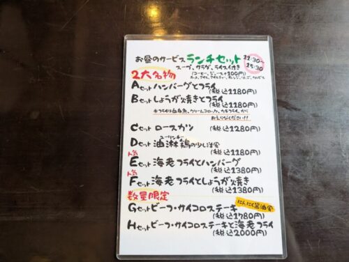 ランチのセットはなんと、AセットからHセットまで8種類!?