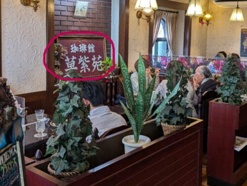 店内にある「珈琲館 草紫苑」と書かれた看板が物語るように、