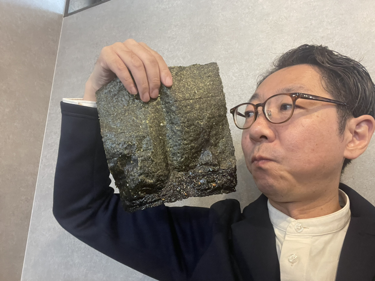 めっちゃデカいこの海苔は熊本県産の一番海苔を使用。