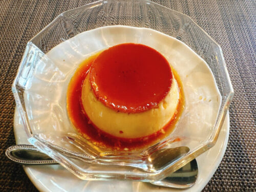 食後に手作りプリンもいただきました。少し硬めでこちらもレトロ感があります。
