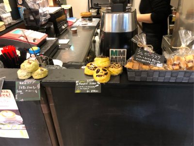 ハロウィン限定のパンプキンスコーン(税込150円)など季節に合わせたイラスト付きのお菓子も可愛いです!
