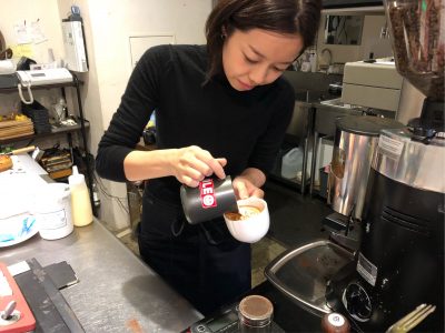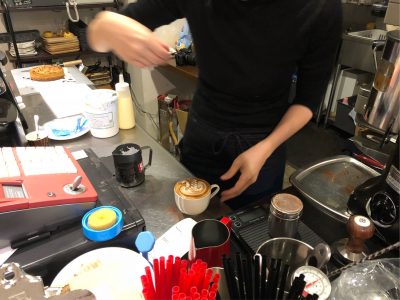 店長の素根さんが、慣れた手つきでさっとラテを作成してくださっています。まるで神のような手さばき…!