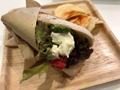 サンドウィッチはカリッと焼かれたパンの生地がモチっとしていて、ドライトマトの甘みとバジルとクリームチーズのほのかな塩味が絶妙です。