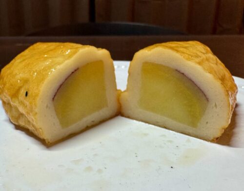 結構歯ごたえ強めのちくわを噛むと、中のしっとりとした芋とアンコがチューブ的な勢いで口の中に入ってきました。
