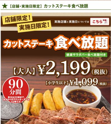 あの“ステーキガスト”のカットステーキが食べ放題に!?熊本店は11月9日(木)限定で!!