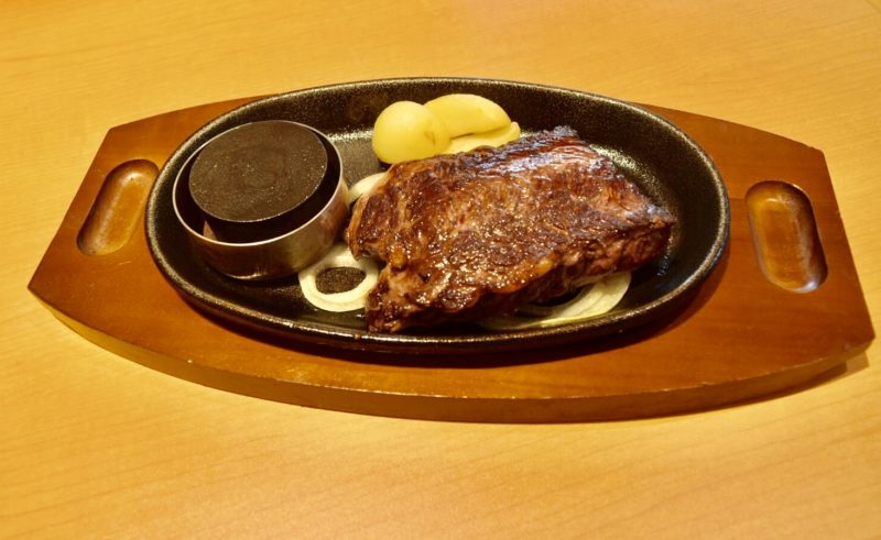 運ばれてきたのは、柔らかい赤身肉「サガリ」をなんと140gも使った「てっぱんステーキ」!