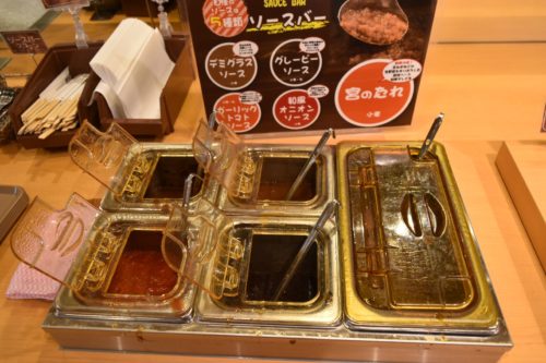 ソースは「宮のたれ」をはじめ5種類。お肉の味変をしたい方にピッタリ。
