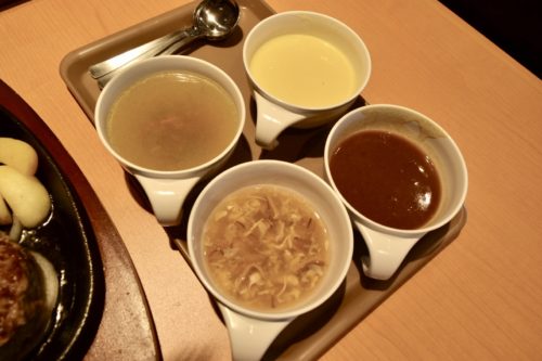 ステーキ宮のさらなるおすすめは、「飲むサラダバー」と題した全4種類の食べ放題スープバーです。