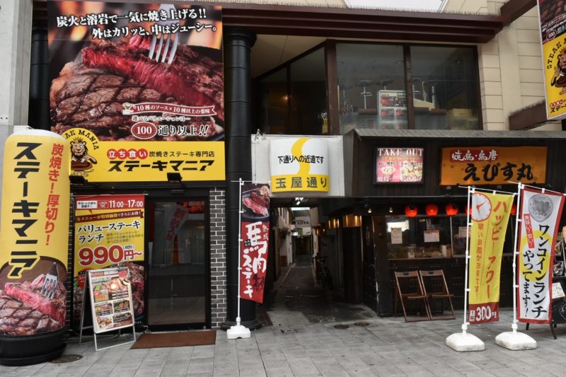 ステーキマニアは、中央区新市街アーケード沿いにある「新市街店」、上通りアーケード沿いにある 「上通店」、東区浜線バイパス沿いにある「はません店」、さらに福岡に2店舗ありますが、これまでの店舗とは違う店構えですよね。