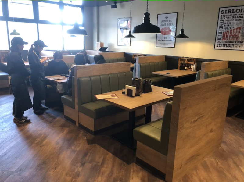 実は、これまで「ゆったり落ち着いた空間」かつ「家族連れ」でステーキを堪能したい! との声が多かったそう。そこで、光の森店は家族でゆっくりご飯を楽しめるように、全席をボックス席にしたそうです。