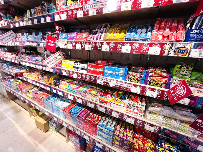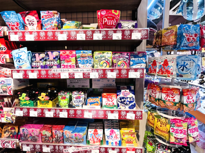 7月末にリニューアルされ、駄菓子屋「だがし夢や」のコーナーが出現しました。「だがし夢や」のスタッフさんがセレクトした駄菓子が並びます。