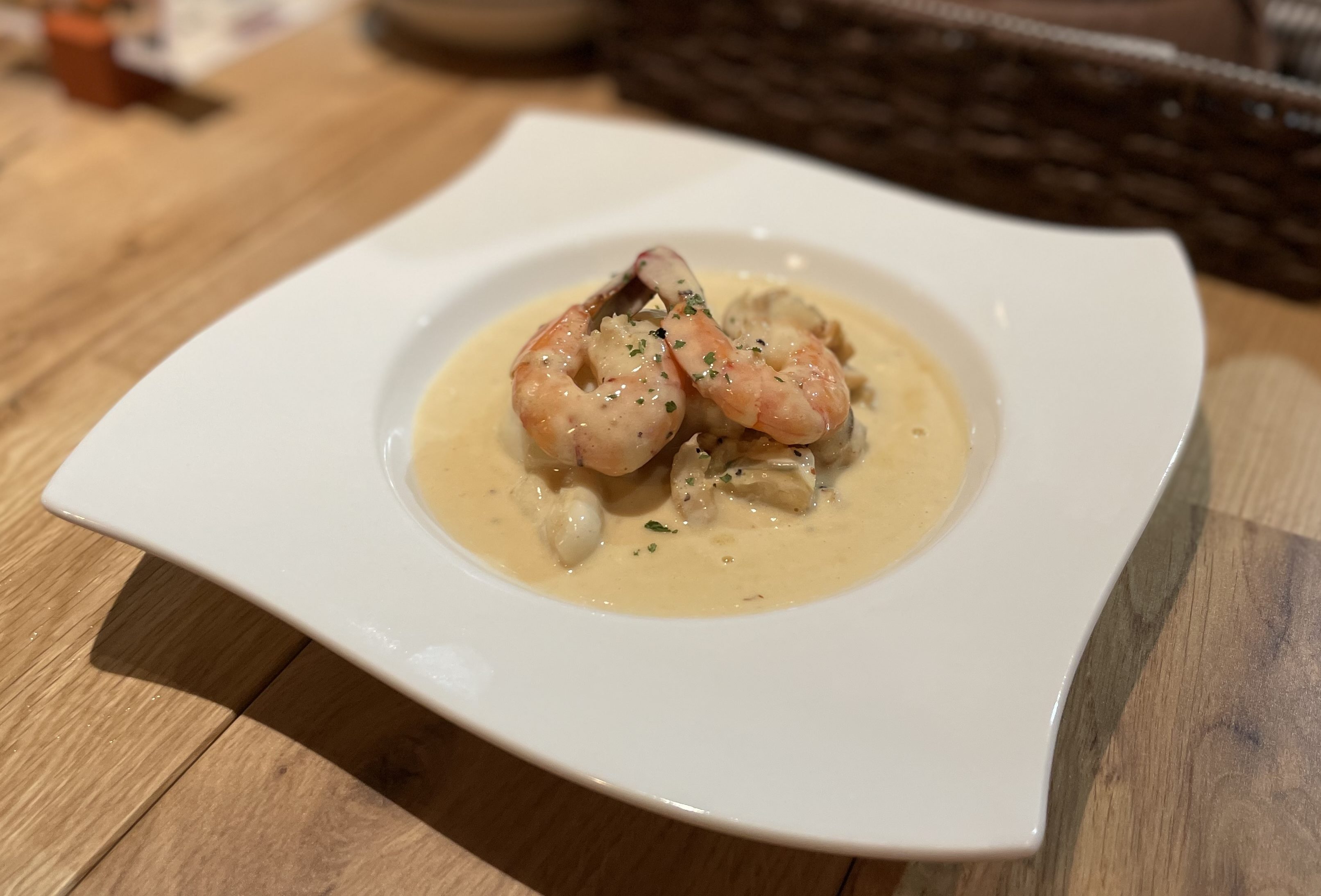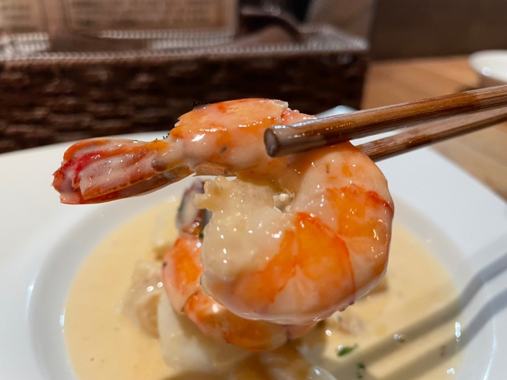お口に入れると、プリッとした口当たりの奥から、ピリリリリッリ!!(⇦スパイシーと言いたい)。コレもお酒がススムくん!帆立・イカが海老の下からザックザク出てきます。スパイシー海鮮の宝箱。