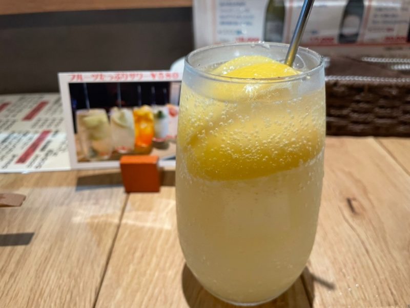 爽やかに涼を得たかったので、「マルイチレモンサワー」。フレッシュレモンがゴロゴロ入っちょる。