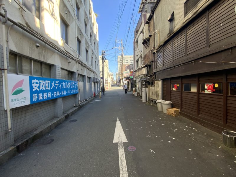 城見町通りから1本南の通りで、ビル中に数々の飲食店がある通りです。