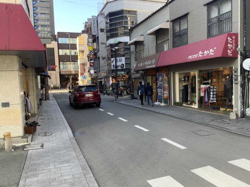 マクドナルド下通り店の向かい側から、市役所裏に進む通りです。