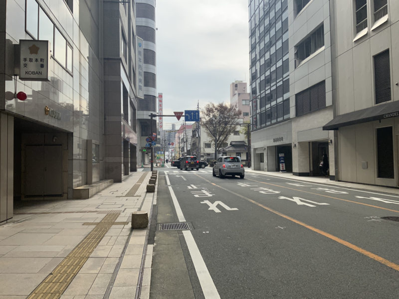 今回、紹介する通りは下通り界隈の通りのうち、銀座通りから通町筋に向かってのこちらの区画。