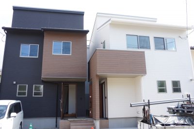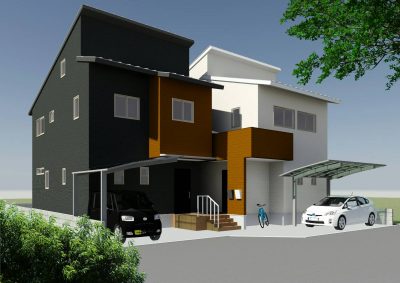 同じ敷地に、形の違う二世帯住宅がフルバージョンで建つという、熊本でも初めてではないか??というくらい珍しい案件です!
