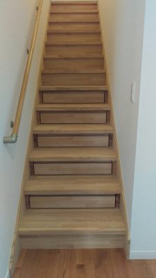 階段の段差は、お母さんの足腰の負担を和らげるために、少し低く設計されていました。
