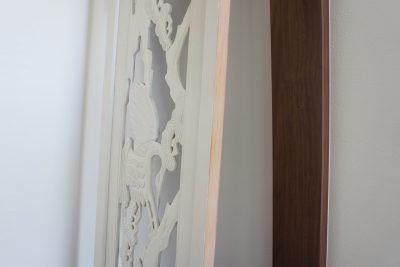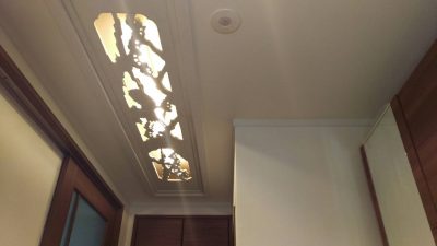 これ取り壊す前の和室にあった欄間を再利用したとよね。まあペイントはしたばってんね。