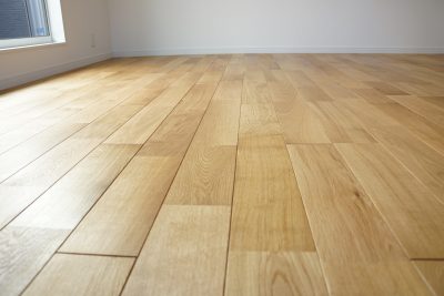 床材は無垢のオーク材。私は傷が入ることにひるみすぎて、二の足を踏んでたのですが
