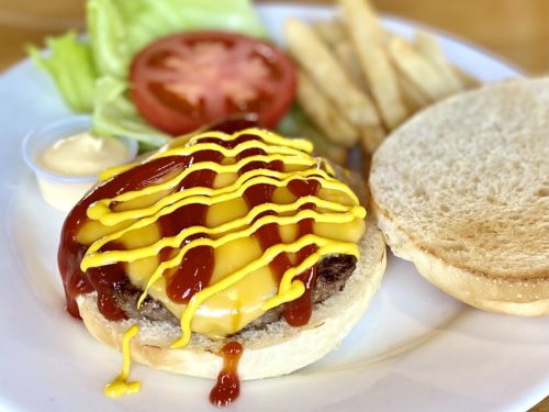 今回は人気メニューの、チーズバーガーとオムライスを注文してみました。