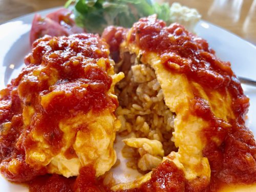 そしてオムライスは、ふんだんにトマトソースがかかっており、こちらも凄く美味しそう!