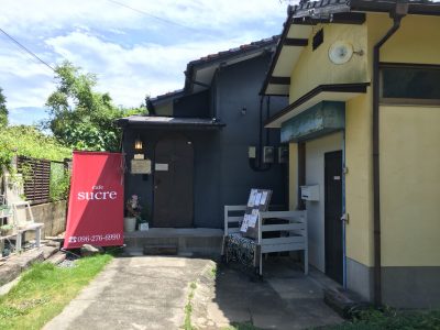 お店の場所は、国道208号線を熊本市内から玉名市内へと向かう途中、「cafe sucre」の赤い看板を目印に、坂道を上ったところにあります。