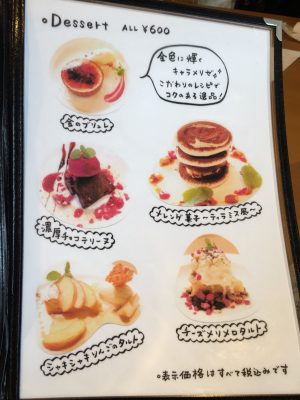 デザートや、14時以降オーダー可能なパンケーキなどもあります。