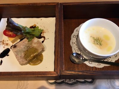新玉ねぎの冷製スープも、暑い時期にぴったりの爽やかな味で、もう前菜から感激の嵐です!